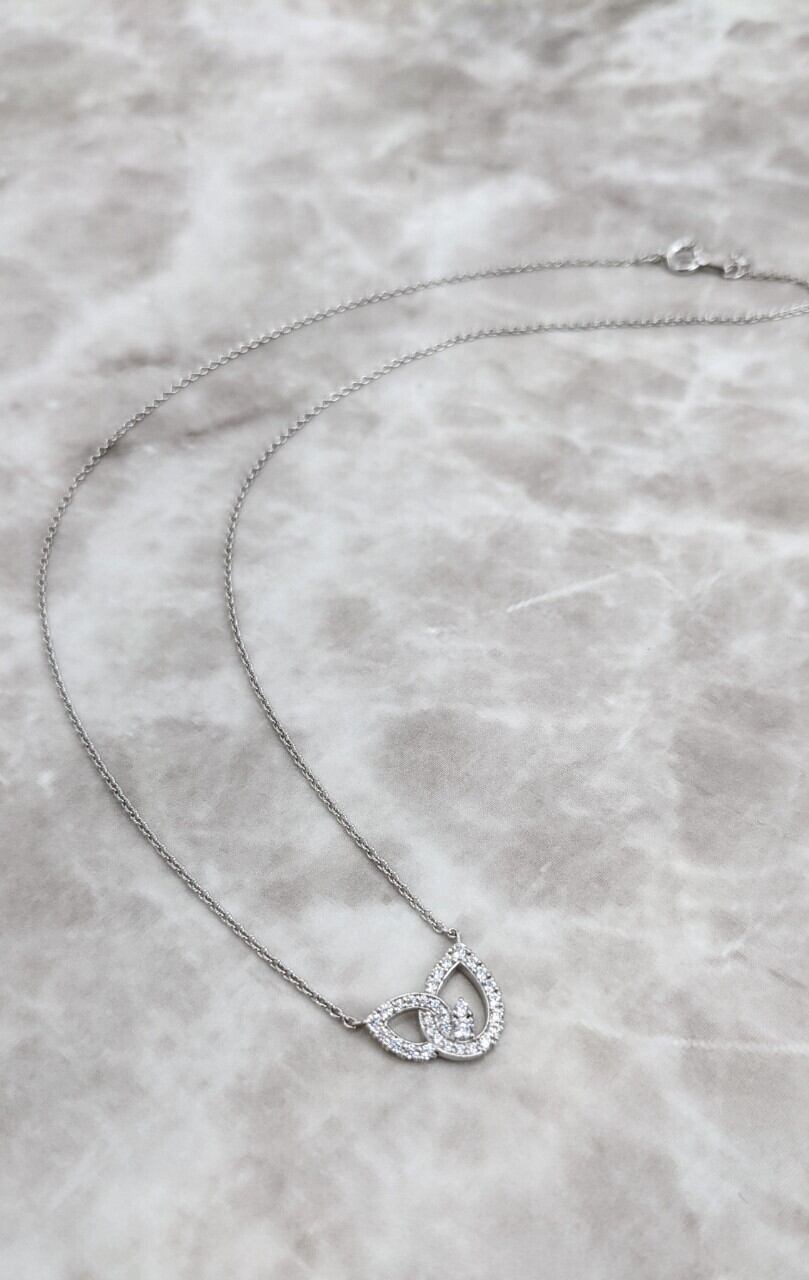 地金:SV925 シルバー (刻印有り) プラチナメッキ ★主石:キュービックジルコニア★ペンダントトップ:(約)横12.5×縦10×厚さ2mm ★チェーン長さ:(約)38cm(アジャスター無)