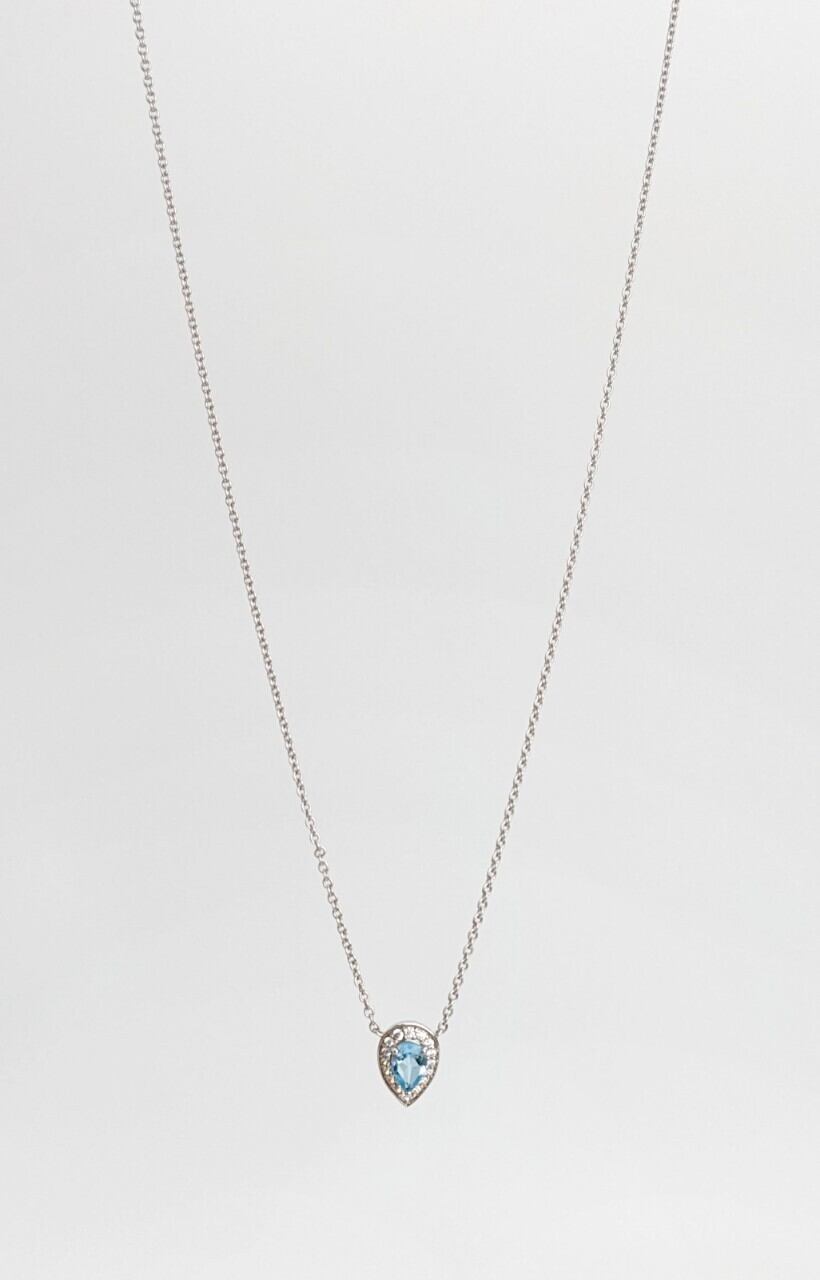 地金:SV925 シルバー (刻印有り) プラチナメッキ ★主石:ブルートパーズ キュービックジルコニア★ペンダントトップ:(約)横8×縦10×厚さ4mm ★チェーン長さ:(約)38cm(アジャスター無)
