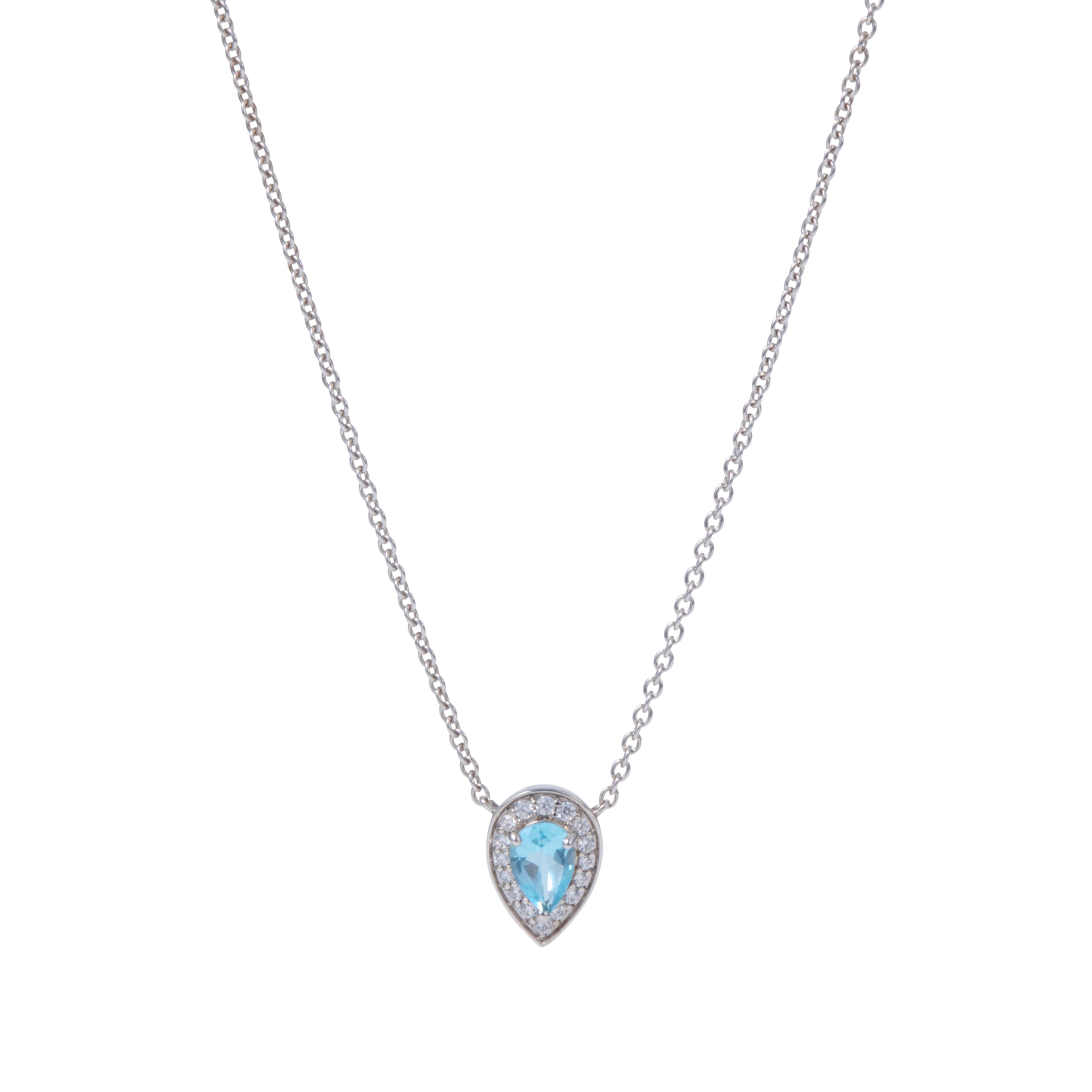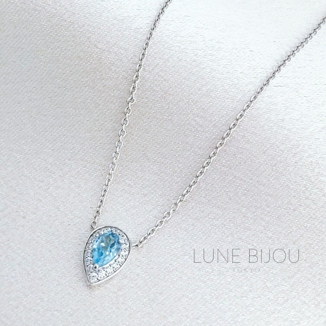 可憐な雫の中で11月の誕生石(ブルートパーズ)とジルコニアキュービックが寄り添いながらきらめきます。身に着けていると幸せを運んでくれると言われている誕生石です。11月の宝石はトパーズとなり、教養、友情、希望、目標達成、強い精神力を意味し、愛情面では「一途な愛で成就する」パワーがある石とも信じられています。※天然石を使用しているため、実際の色味や風合いが異なる場合がございます。バックの留め具部分にキュービックの飾りが付いています。